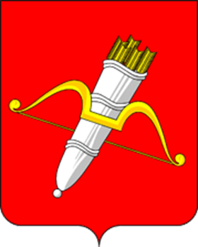 «В червлёном (красном) поле серебряный колчан с золотыми стрелами в левую перевязь, продетый через золотой лук, положенный в косвенный пояс».